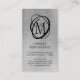 Modern, stylish professional business card with an elegant decorative monogram or initial in black against a faux silver brushed metal foil background. Luxurious black and silver. CHANGES: Change the text font style, colour, size and placement by clicking on CUSTOMIZE FURTHER under the PERSONALIZE section. Contact the designer via Zazzle Chat or makeitaboutyoustore@gmail.com if you'd like this design modified, on another product or would like coordinating items.