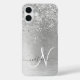 Silver Brushed Metal Glitter Monogram Name Case-Mate iPhone Case