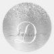 Silver Brushed Metal Glitter Monogram Name Classic Round Sticker