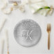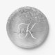 Silver Brushed Metal Glitter Monogram Name Paper Plate