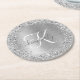 Silver Brushed Metal Glitter Monogram Name Round Paper Coaster