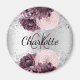 A faux silver looking background decorated with burgundy and pink florals, flowers. Personalize and add your monogram initials and first name