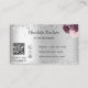 A faux silver looking background decorated with burgundy and pink florals, flowers. Personalise and add your monogram initials, first name and full name on front.