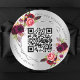 Silver burgundy florals geometric QR code wedding Classic Round Sticker