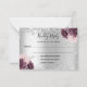 A faux silver metallic looking background, decorated with sparkling faux glitter and burgundy and pink florals. Personalise and add the reply by date and your names.
