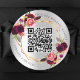 Silver burgundy florals gold geometric QR wedding Classic Round Sticker