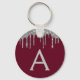 Silver Burgundy Girly Sparkly Glitter Monogram Key Ring