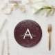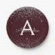 Silver Burgundy Glitter Sparkle Monogram Birthday Paper Plate