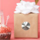 Dynamic sticker in 3d look shining silver chrome burst design in the popular round shape.
