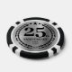 Poker chips for employees or clients to celebrate the 25th anniversary of your business. Commemorative design personalized with your company logo and the year on the front, with a faux silver metal background, a laurel branch, and stars. On the back, it has space to add a bigger logo or an image, and it can be changed to text by clicking the button to edit the design.