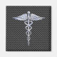 Silver Caduceus Medical Symbol Carbon Fiber Style Magnet