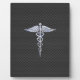 Silver Caduceus Medical Symbol Carbon Fiber Style Plaque
