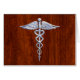 The Symbolic Silver Chrome Like Caduceus Medical Symbol design presented here on a rich mahogany wood grain printed decor. The caduceus snakes is designed to look like it is made of chrome. Good for a graduation occasion, a statement for your profession, or for a gift with that medical look your are looking for.