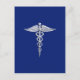 Silver Caduceus Medical Symbol on Navy Blue Decor Postcard