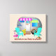 Camper welcome wrapped canvas with two places to add your own text. A tropical camping image includes bright colours, flamingos and a seashell just outside the door of a cute little camping trailer. The family name can be added to the outside of the trailer, with more text along the bottom to welcome guests to "our house on wheels". The bottom text must be one line only, and don't let the wording get near the edge. Change this to any size (not extra large), but the image placement may change. Go into the customise area if you'd like to move the name template or change the background colour yourself.