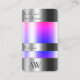 Make a lasting impression with this eye catching and quality business card template featuring a striking aluminium silver box with glass and pink blue fluids optics.