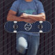 Silver Cancer Sign on Navy Blue Carbon Fibre Print Skateboard