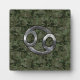Silver Cancer Zodiac Sign on Green Digital Camo Plaque