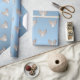 A colourful Christmas pattern of silver angel figures set against a pretty blue background.