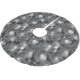 A Christmas tree silver skirt featuring a pattern of silvery metallic Christmas baubles and Christmas tree decorations to add an elegant look to your Christmas tree this holiday season.