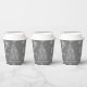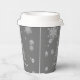 Sip your favourite Christmas time beverages with a festive set of Silver Christmas Tree and Snowflakes Paper Cups. Paper cup design features a vibrant artistic Christmas tree with falling snowflakes and a dark grey background. Additional gift and holiday items available with this design as well.