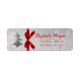 Adorable christmas silver tree and red bow on white background. An elegant and sophisticated designe.Costumize with your name and address details.
