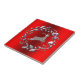 An elegant Christmas tile (or coaster) with a silver, prancing reindeer in the middle of a silver Christmas wreath on red, with silver holly and leaves to add a designer touch to your holiday entertaining this Christmas holiday.