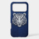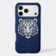 Step into the future of luxury with this iPhone 17 Pro Max case featuring an ultra-detailed metallic silver chrome tiger. The geometric 3D mask design creates a sharp, powerful aesthetic, perfectly contrasted against a deep cobalt blue python snakeskin background. This unique fusion of wild nature and modern industrial art is designed for those who want their tech to look premium and bold. High-quality print with a sleek, metallic finish.