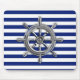 Silver Chrome Wheel on Nautical Stripes Mouse Pad