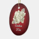 This ornament is easily customised with the date on the front and a personal message on the reverse. It features an elegant fully open silver coloured rose set against a dramatic seasonal red gradient background.