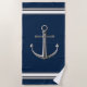 This towel design has a silver coloured anchor with coordinating accent stripes at the top and bottom. Shown here with a navy background, that you can customise.