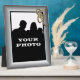 A indigo blue 3D look design frame with a theatre mask frame for your photo on a 8" x 10" Photo Plaque.