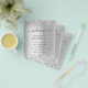 A modern, elegant wedding program, timeline. Faux silver looking background decorated with faux silver confetti. Personalize and add your names and wedding details. Black colored letters. If you have more text it's possible to reduce the line space.