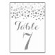 Add a touch of sparkle and shine to your wedding reception with these elegant table numbers. Featuring a cascade of shimmering silver confetti on a crisp white background, these cards create a modern and chic look. Easily personalise with your table numbers for a cohesive and unforgettable table setting.