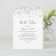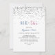 This silver confetti he or she gender reveal invitation is perfect for a rustic baby gender reveal. The simple and elegant design features silver confetti and classic fancy script typography in blue, black and pink.