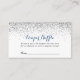 This silver confetti minimalist diaper raffle ticket enclosure card is perfect for a rustic baby shower. The simple and elegant design features silver confetti and classic fancy script typography in blue and black.