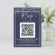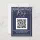 Silver confetti navy blue typography qr code rsvp card