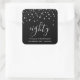Silver Confetti on Black 80th Birthday Square Sticker