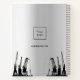 A faux silver background, with black industrial cranes as decor. Personalise and add your business logo, name and contact information. Black letters