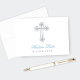 Simply stylish folded baptism or christening thank you note card for a baby boy features an elegant silver cross with the baby's name in blue script and customizable "Blessed Child" text in gray. The inside is blank for your personal handwritten message. The clean white design with blue and silver accents coordinates with the silver and blue damask baptism invitation suite. All text can be fully personalized.