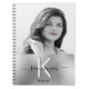 A faux silver metallic looking background. Personalise and add your own photo, a name, monogram letter and a year. The name is written in black with a large modern hand lettered style script with swashes. The monogram letter in white. For taking notes, as a dirary, journalling, school, work your personal/family life. To keep the swashes only delete the sample name, leave the spaces or emoji's in front and after the name