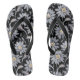 Silver Daisies on Black Floral Flip Flops