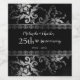 Elegant silver damask and lace over black background. Silver and gold hearts. 25th anniversary