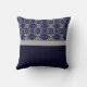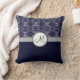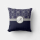 Silver Damask on Blue with Stripes and Monogram Cushion