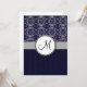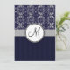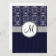 Silver Damask on Blue with Stripes and Monogram Invitation