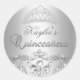 Silver Quinceanera Sticker. Elegant damask pearl design & diamond bows. Please note: All flat images!