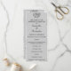 A very elegant wedding program in grey and silver, part of the ''Silver Damask'' matching set of wedding stationery featuring a grey and white damask pattern with silver ornament.