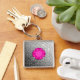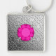 Silver Damask with a faux pink tourmaline gem Key Ring