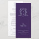 Silver dark purple crown crest monogram wedding menu