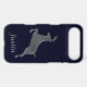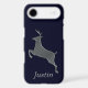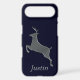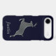 A faux chrome silver deer in mid jump is the feature on this case for him. The image is placed on a dark blue background, with his name in silver grey below. Any hunter, or any man who just enjoys the outdoors would love this case! *Please note - the image is printed and contains no actual chrome, silver, or metal.*